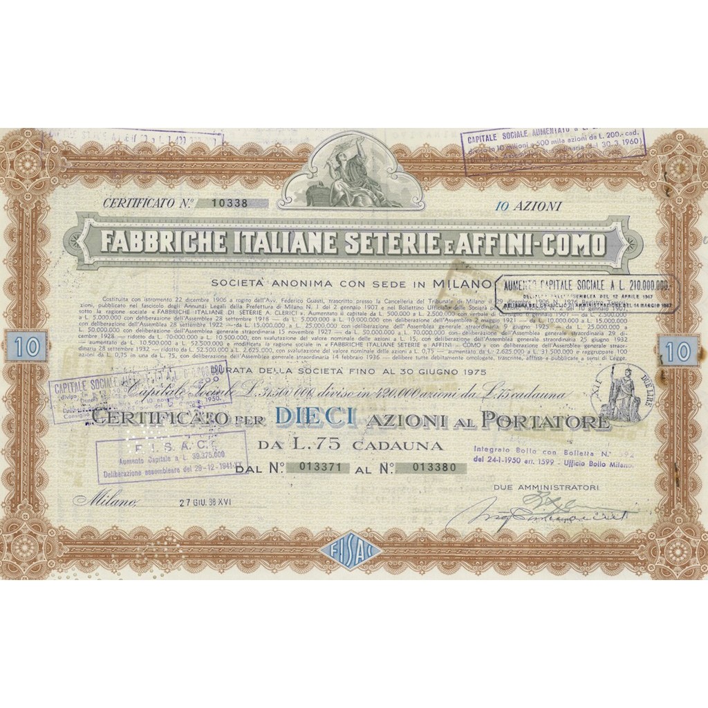 CERTIFICATO DA 10 AZIONE