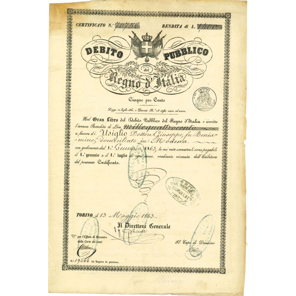 Tra i primi documenti del Debito Pubblico del Regno d'Italia.