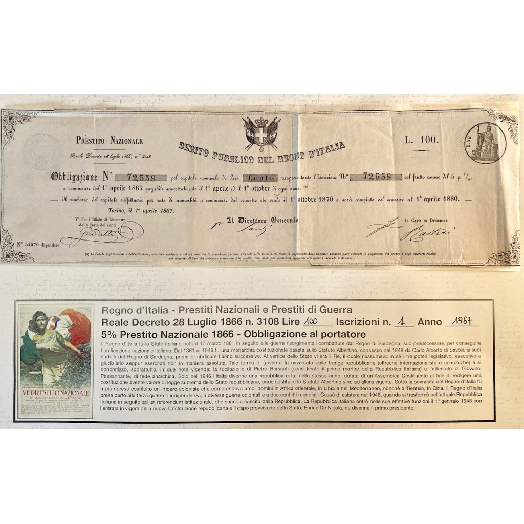 Vi furono, inoltre, esigenze di tipo economico-finanziario poiché il bilancio dello Stato era in dissesto. Il Governo fu costretto ad emettere il primo prestito di 500 milioni di lire.