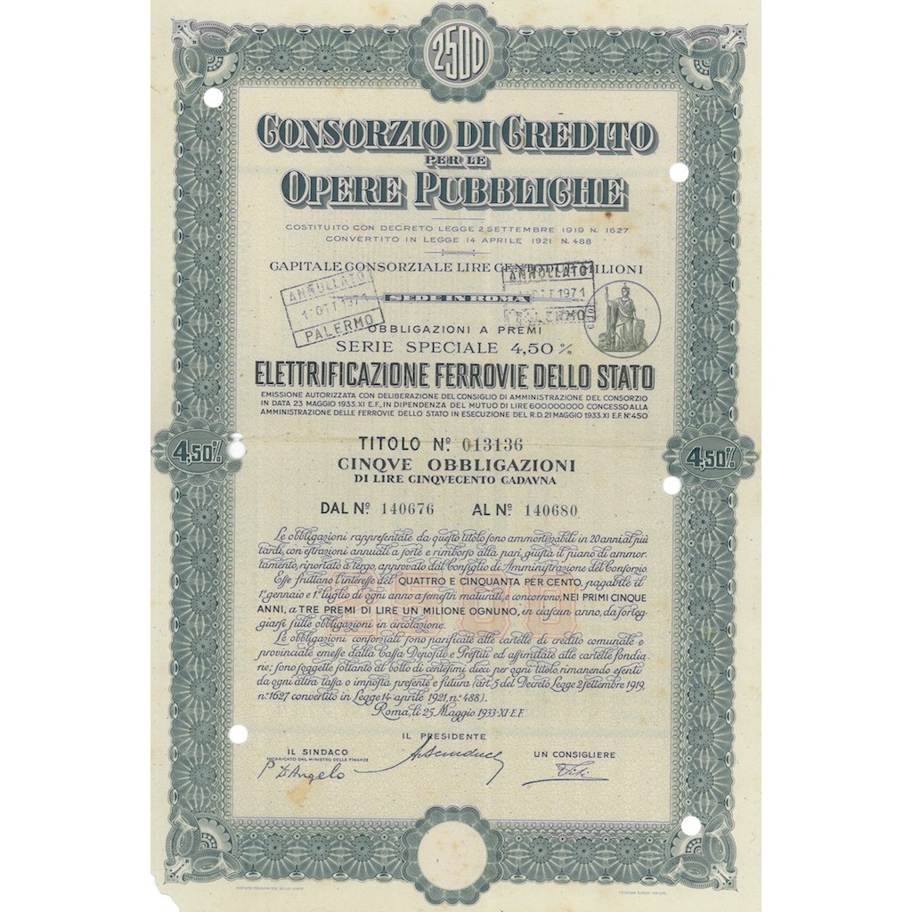 COSTITUITO CON DECRETO LEGGE N. 1627 DEL 2 SETTEMBRE 1919