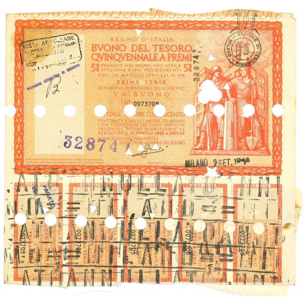 LIRE 500 - UN BUONO 4%