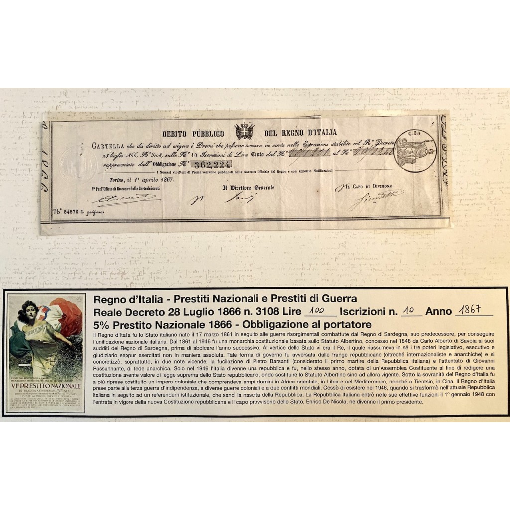 Vi furono, inoltre, esigenze di tipo economico-finanziario poiché il bilancio dello Stato era in dissesto. Il Governo fu costretto ad emettere il primo prestito di 500 milioni di lire.