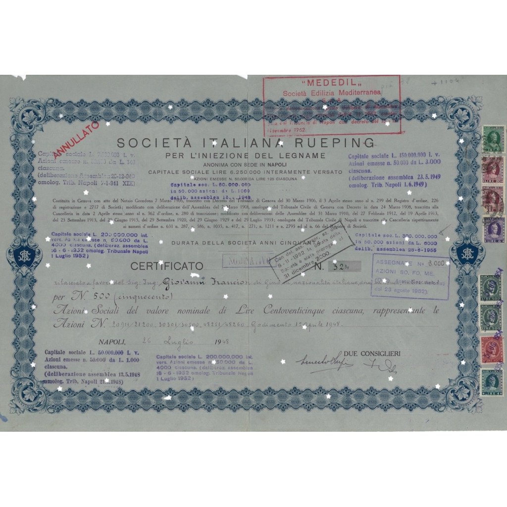 CERTIFICATO PER 500 AZIONI