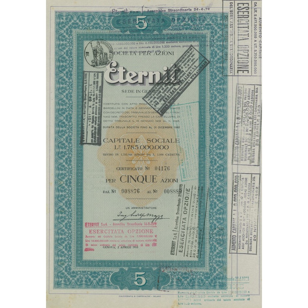Certificato per 5 azioni. Costituita il 6 gennaio 1906.
