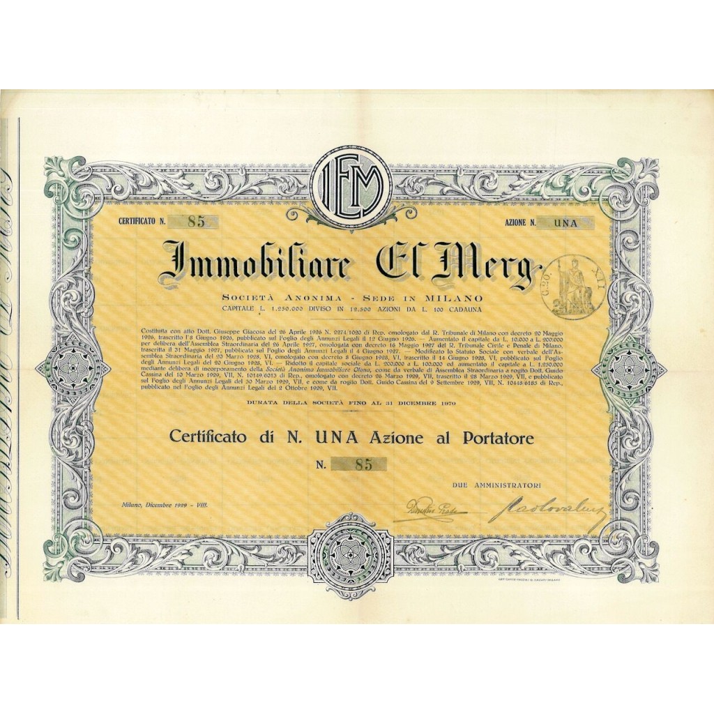 1929 - IMMOBILIARE EL MERG - MILANO