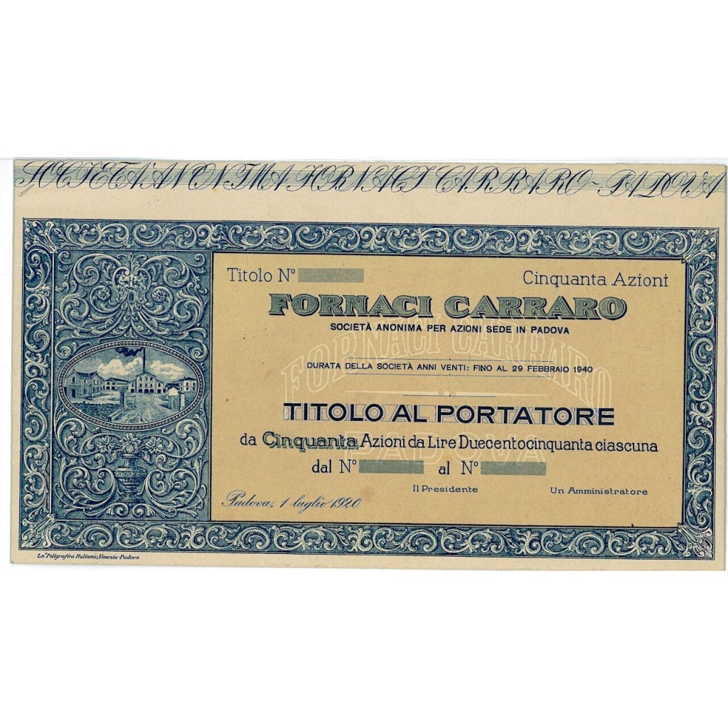 Titolo al portatore per 50 azioni del valore di Lire 250 ciascuna.