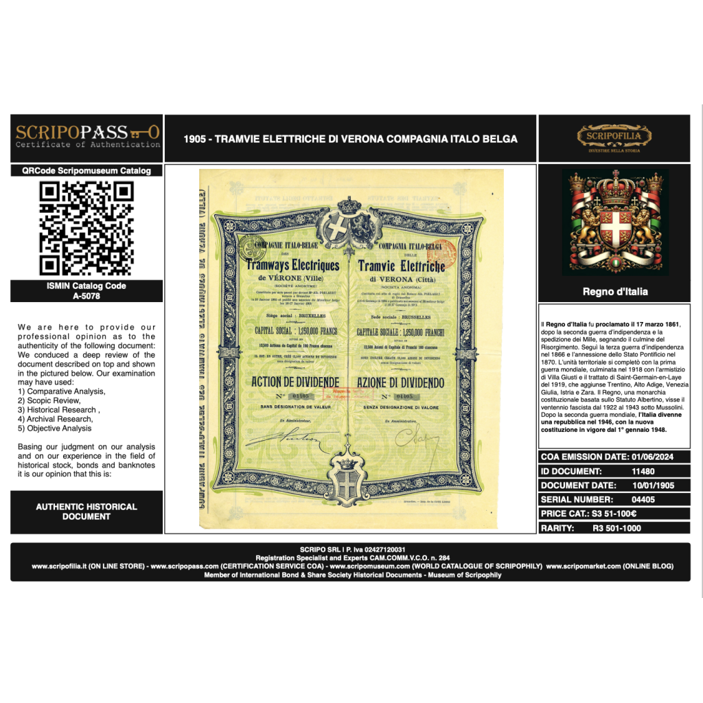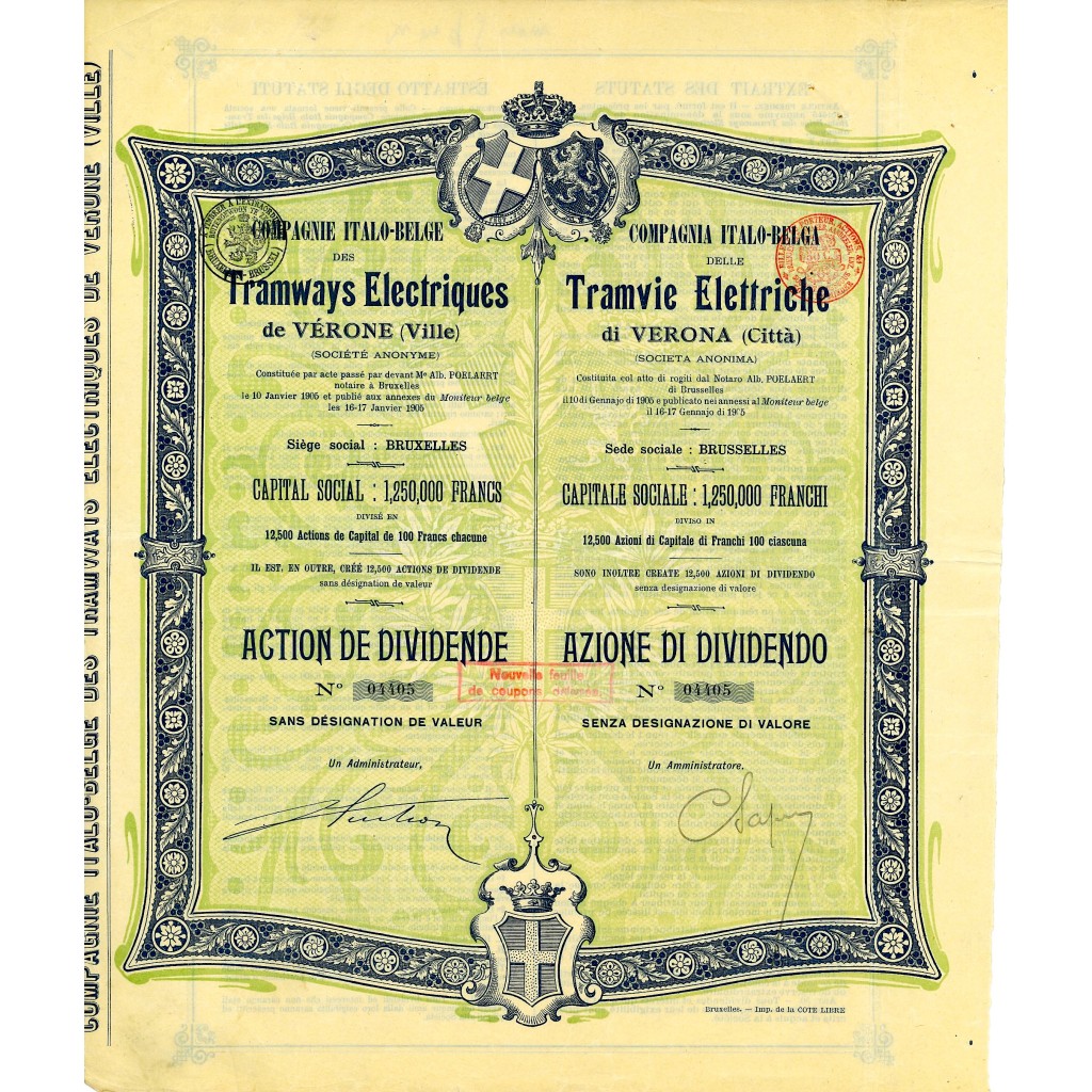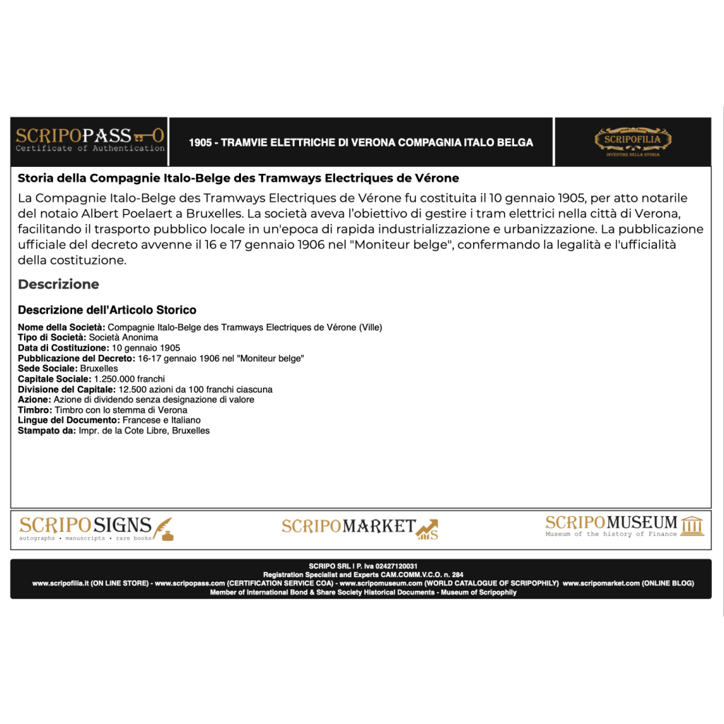 Nome della Società: Compagnie Italo-Belge des Tramways Electriques de Vérone (Ville)