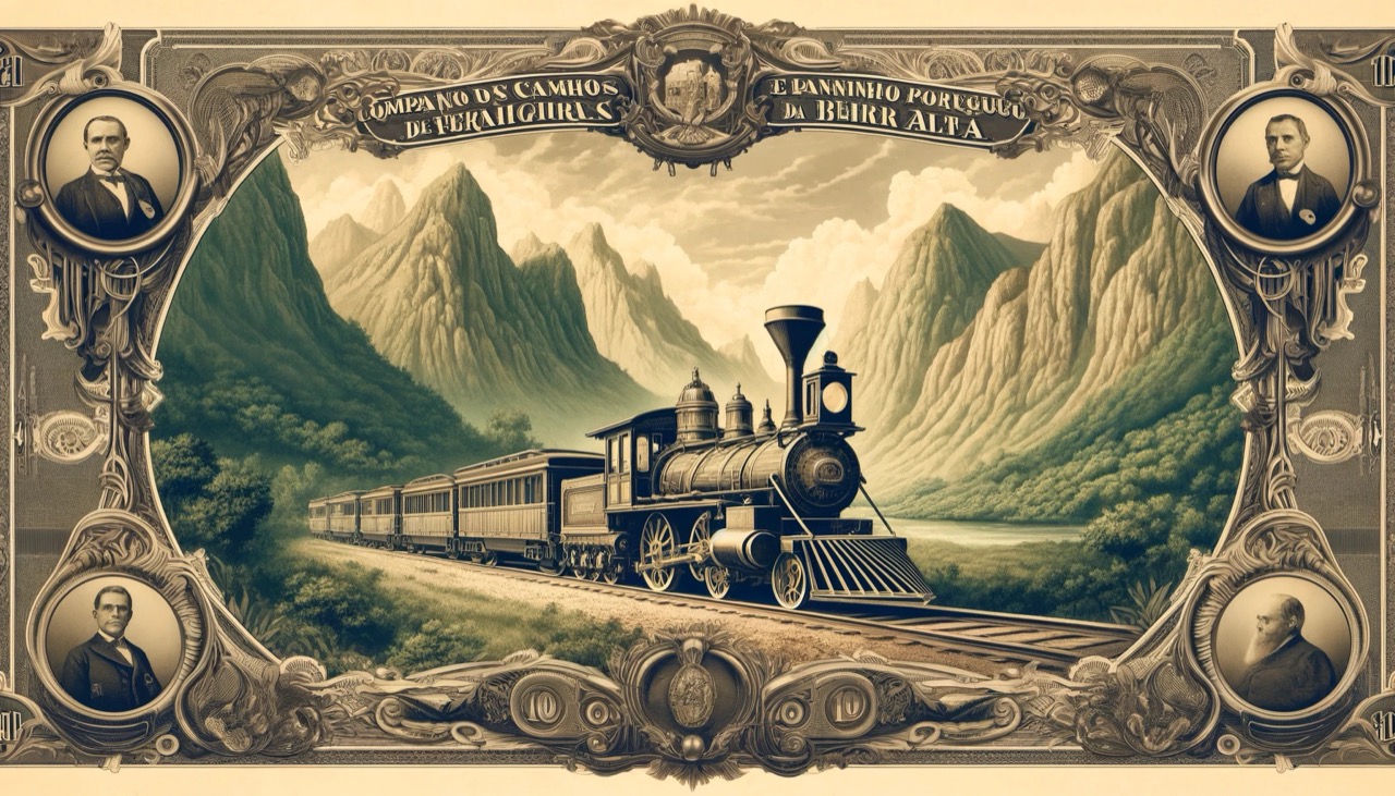 L'immagine qui sopra è ispirata alla storia e all'importanza della "Companhia dos Caminhos de Ferro Portugueses da Beira Alta". Rappresenta un treno storico che attraversa un paesaggio montuoso, simbolizzando il progresso e la connessione tra regioni portoghesi e l'Europa.