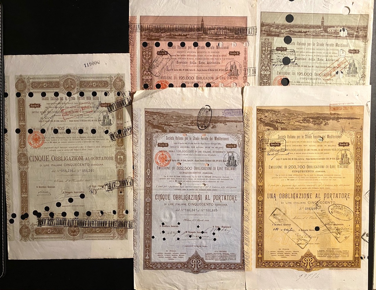 5) Soc. Italiana per le Strade Ferrate Meridionali ( 5 obbligazioni)