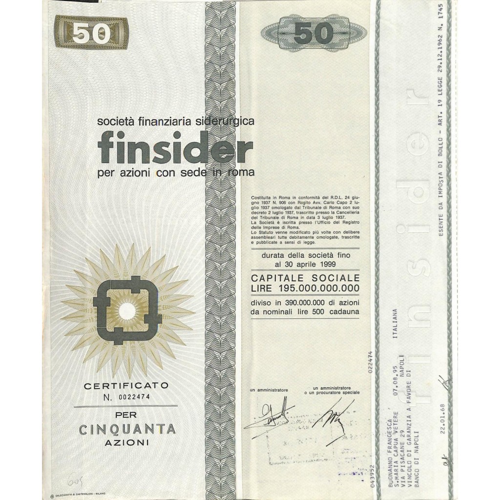 FINSIDER - CAP. SOC. 195.000.000.000 - 50 AZIONI ROMA 1968