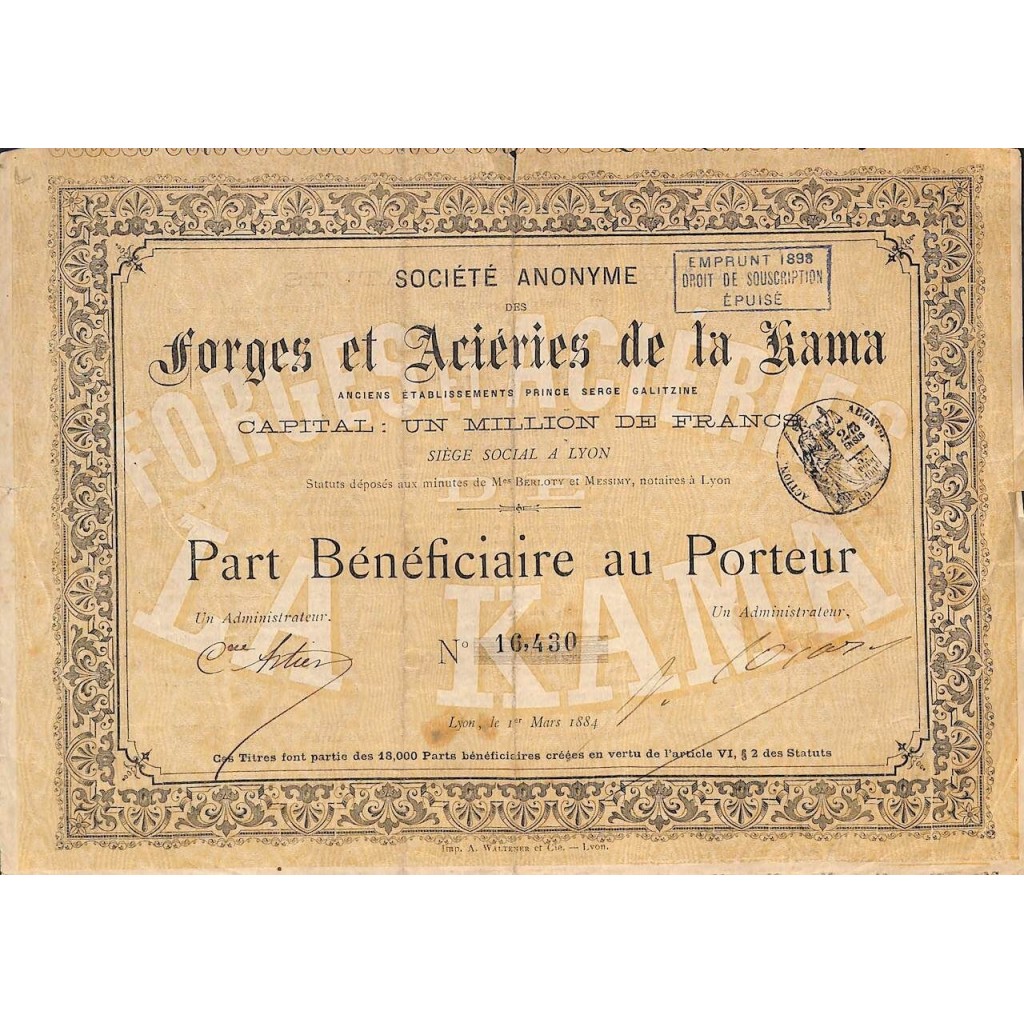 1884 - FORGES ET ACIERIES DE LA KAMA