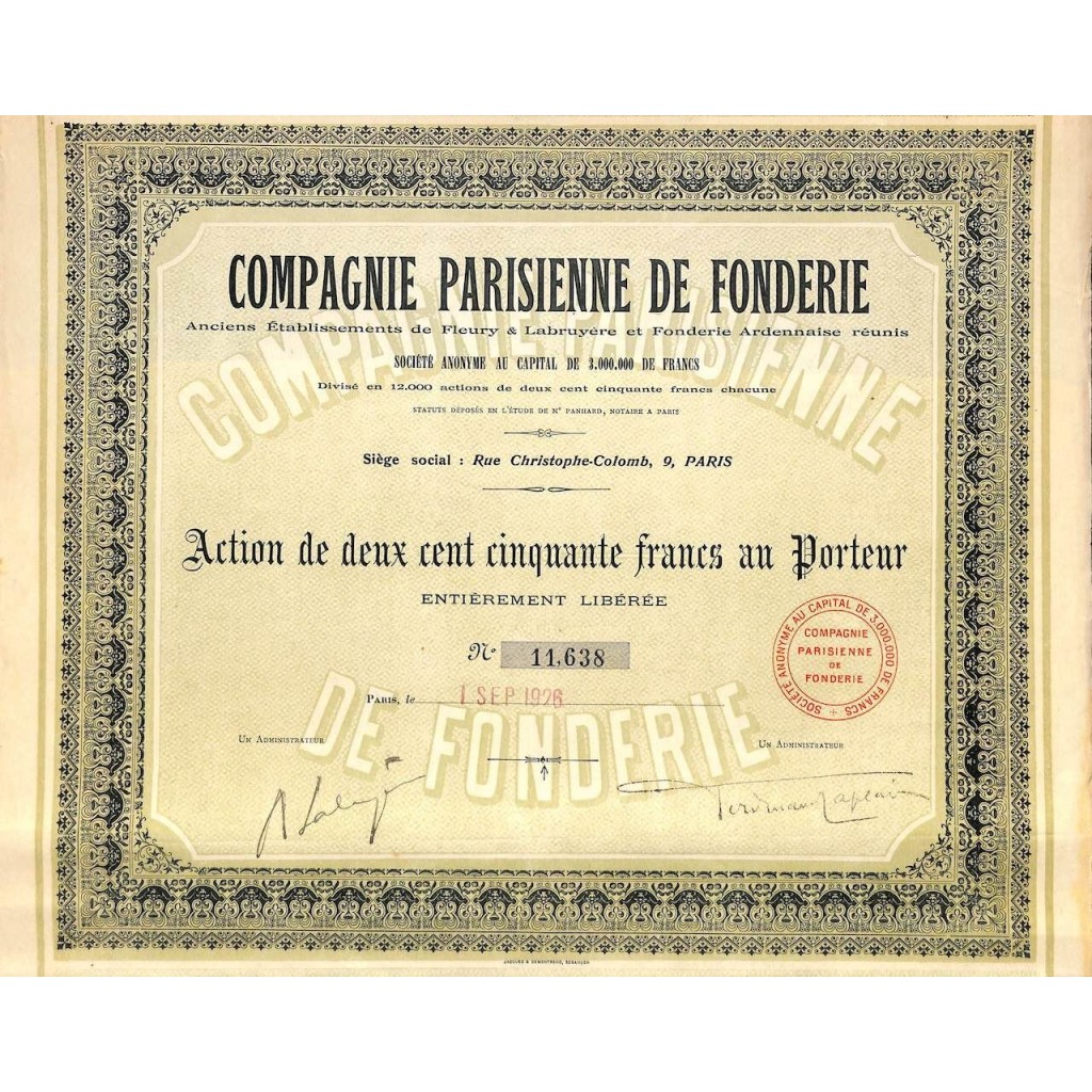 1926 - COMPAGNIE PARISIENNE DE FONDERIE
