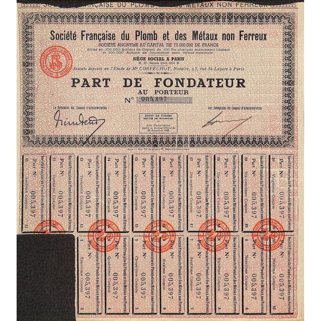 1931 - FRANCAISE DU PLOMB ET DES METAUX NON FERREUX SOC.