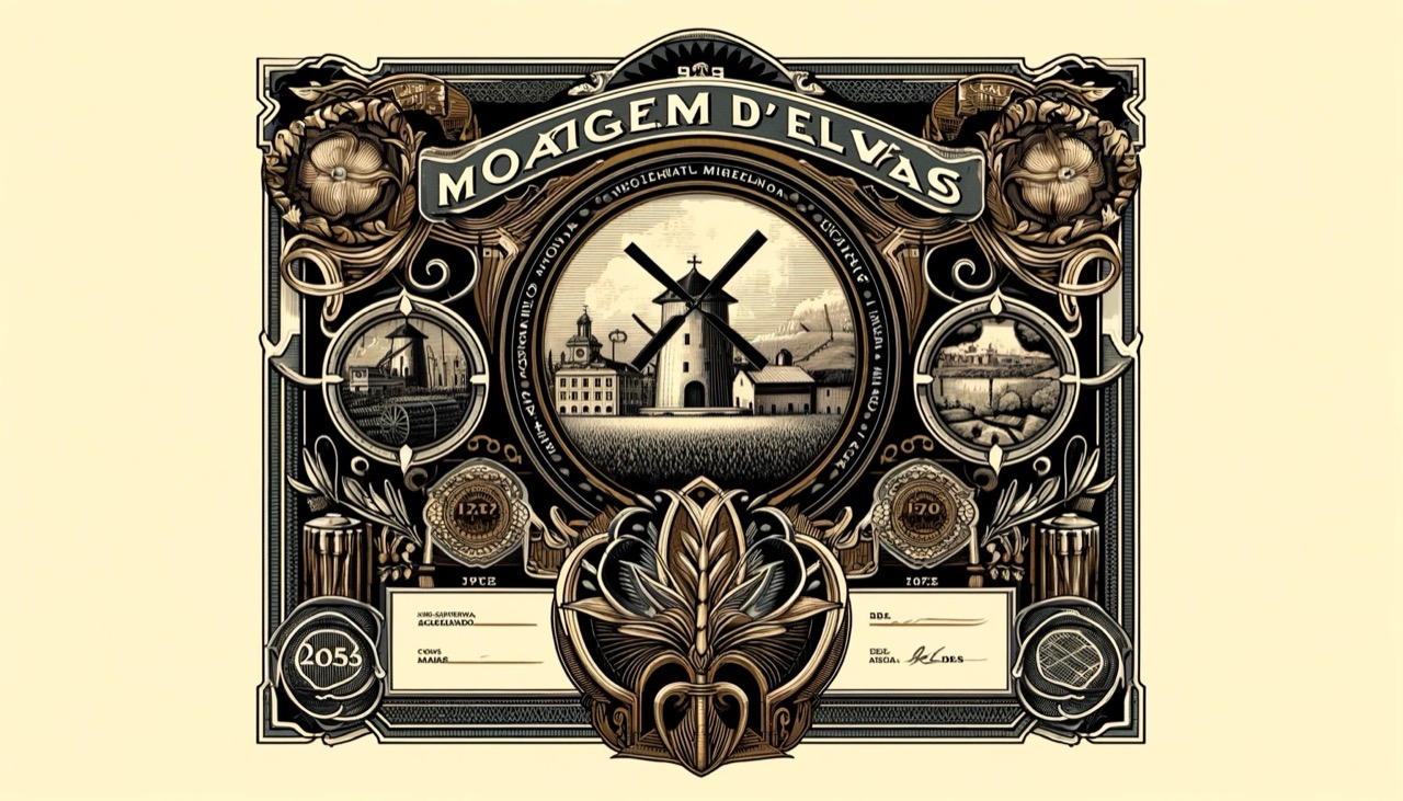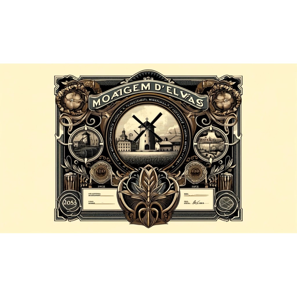 L'immagine rappresentativa della storia della Moagem D'Elvas del 1933, ispirata agli elementi decorativi e ornamentali tipici dei certificati azionari dell'epoca. Spero che rispecchi al meglio la storicità e l'eleganza di questa società.