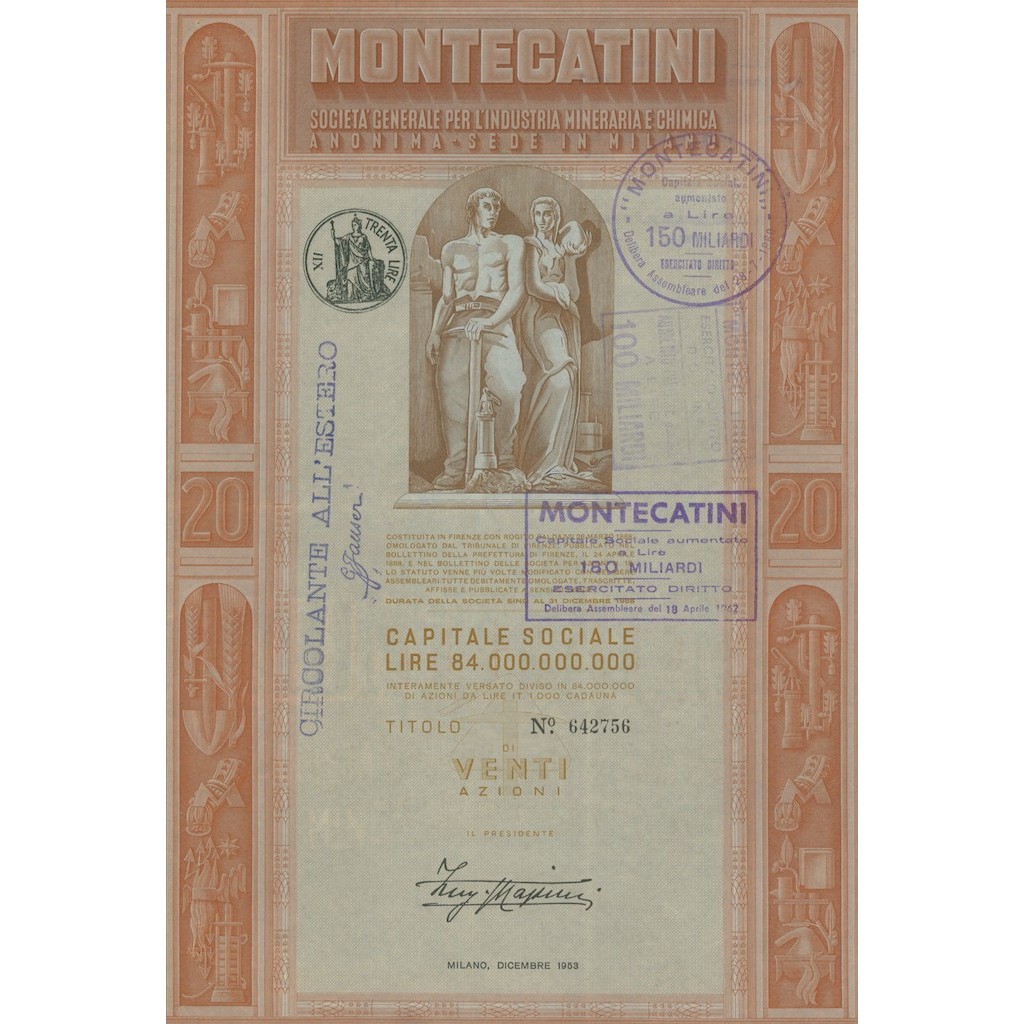 1953 - MONTECATINI - 20 AZIONI - MILANO
