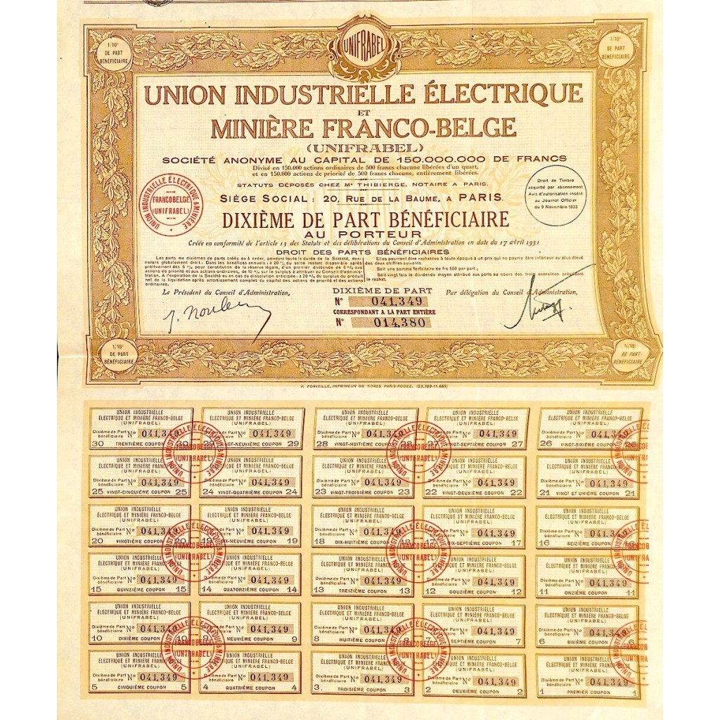 Decimo di parte beneficiaria al portatore.