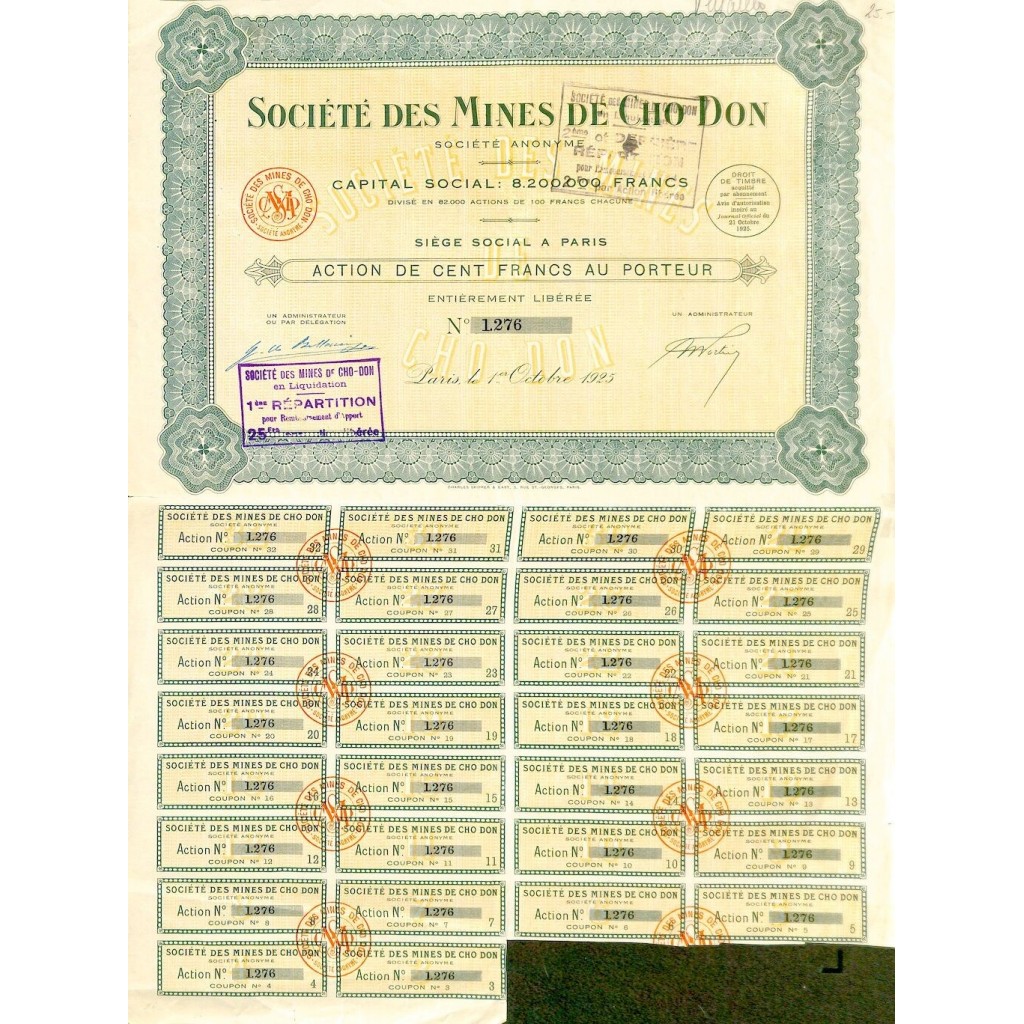 1925 - MINES DE CHO DON SOC. DES