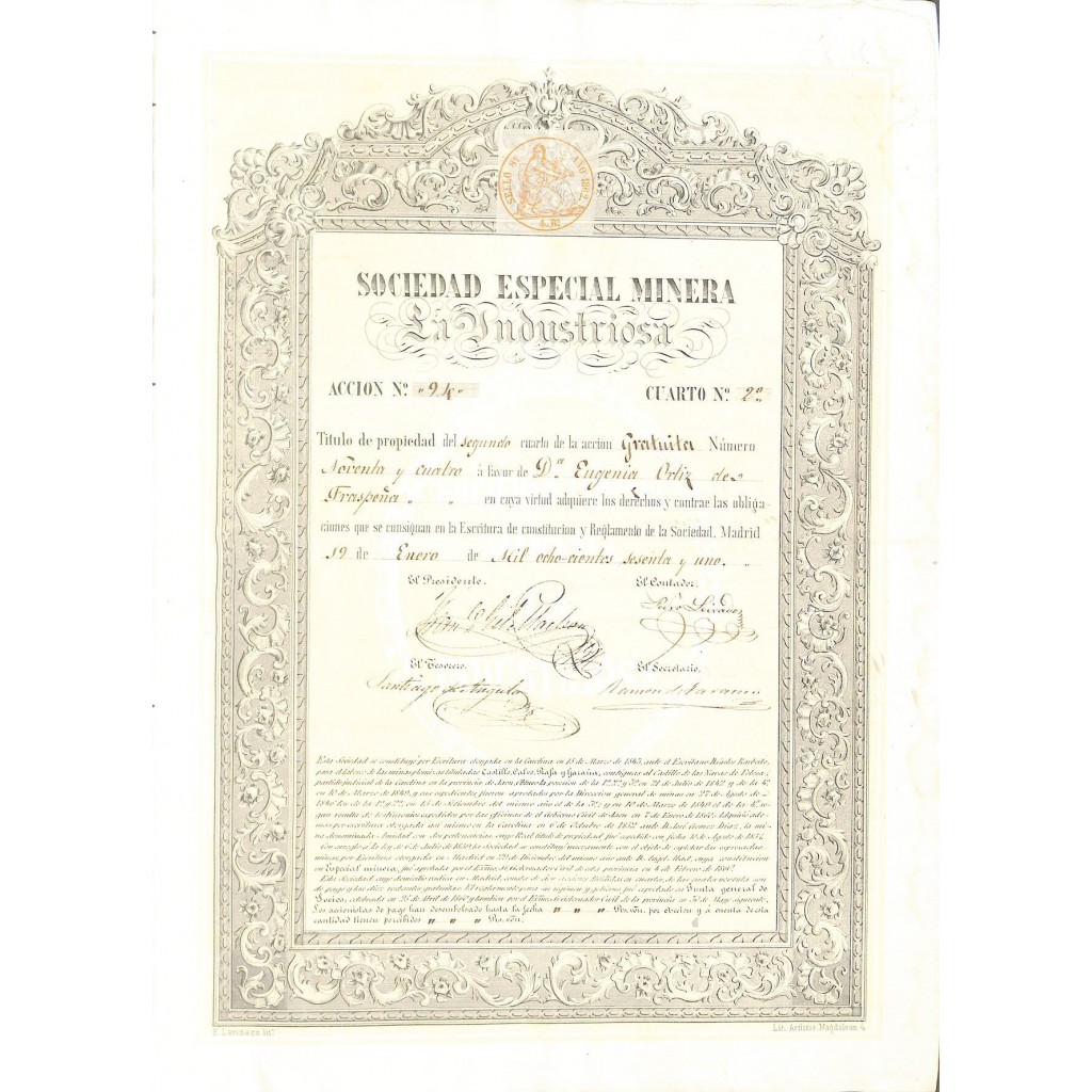1861 - ESPECIAL MINERA LA INDUSTRIOSA SOC.
