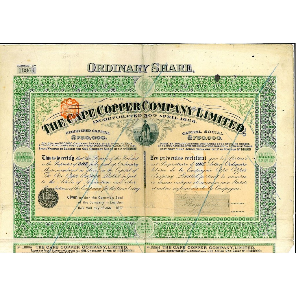 La Cape Copper Company ebbe la sua origine nella Cape Copper Mining Company, che fu fondata nel 1862 o nel 1863 come capo di Good Hope Copper Mining Company per rilevare le proprietà minerarie del rame di Phillips & King, un'impresa che era stata coinvolta nel rame minerario intorno a O'okiep in Namaqualand dal 1850. La Cape Copper Mining Company fu ristrutturata come la Cape Copper Company nel 1888.