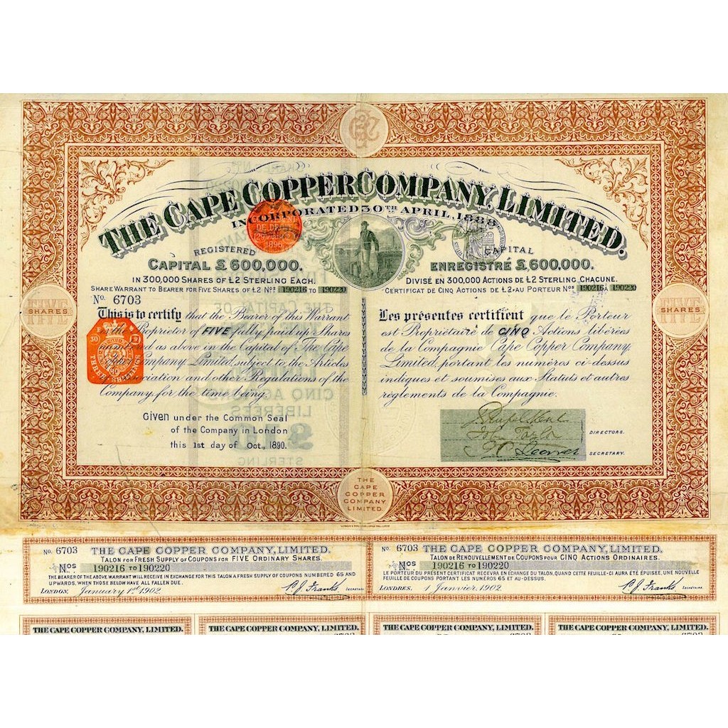 La Cape Copper Company ebbe la sua origine nella Cape Copper Mining Company, che fu fondata nel 1862 o nel 1863 come capo di Good Hope Copper Mining Company per rilevare le proprietà minerarie del rame di Phillips & King, un'impresa che era stata coinvolta nel rame minerario intorno a O'okiep in Namaqualand dal 1850. La Cape Copper Mining Company fu ristrutturata come la Cape Copper Company nel 1888.