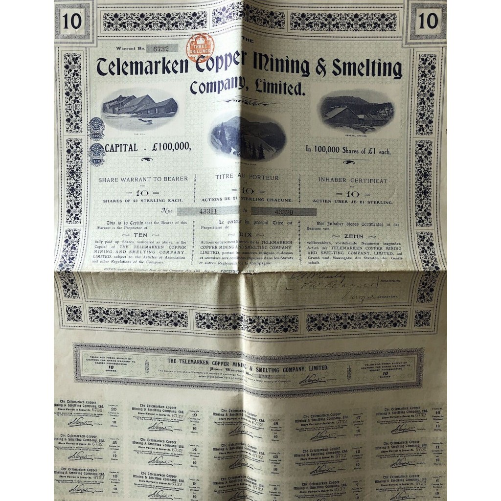 Titolo di 10 azioni al portatore del valore di 1 Sterlina ciascuna.