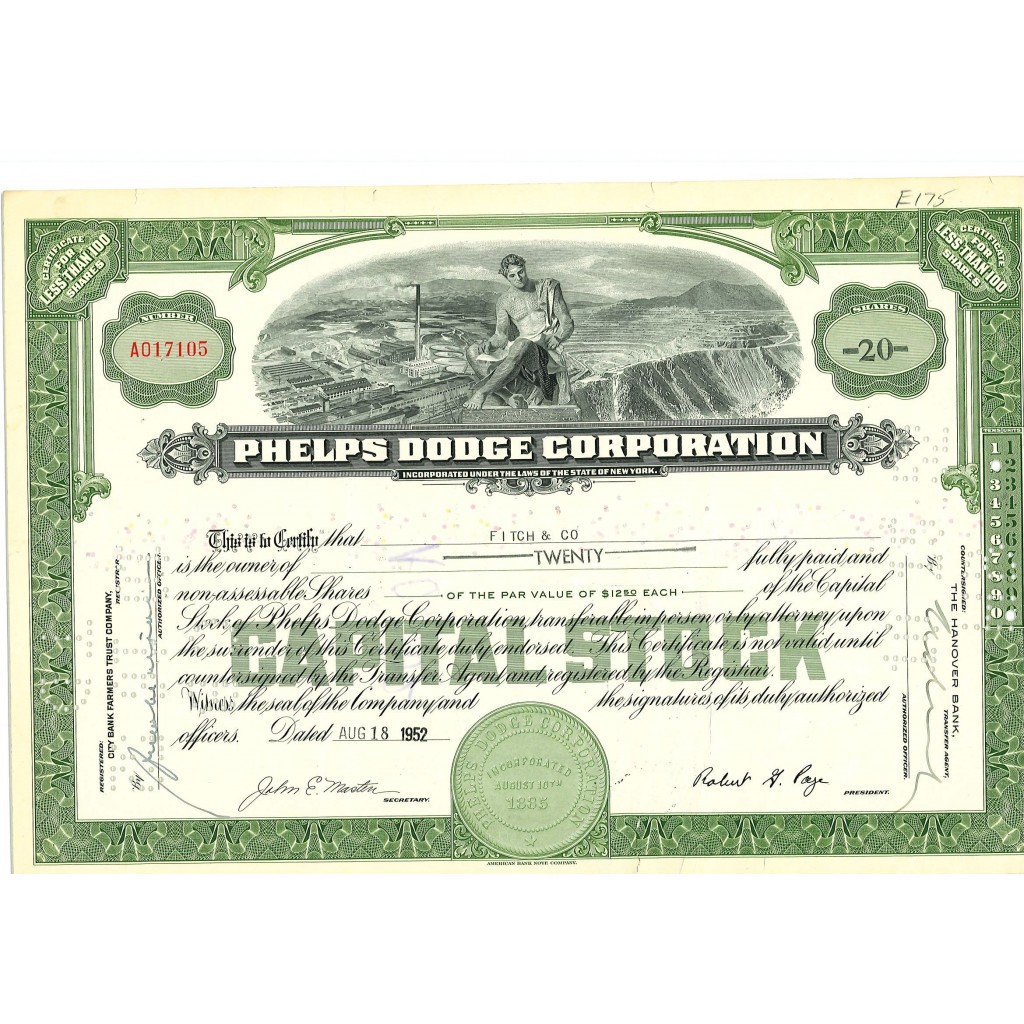1952 - PHELPS DODGE CORPORATION - 20 AZIONI