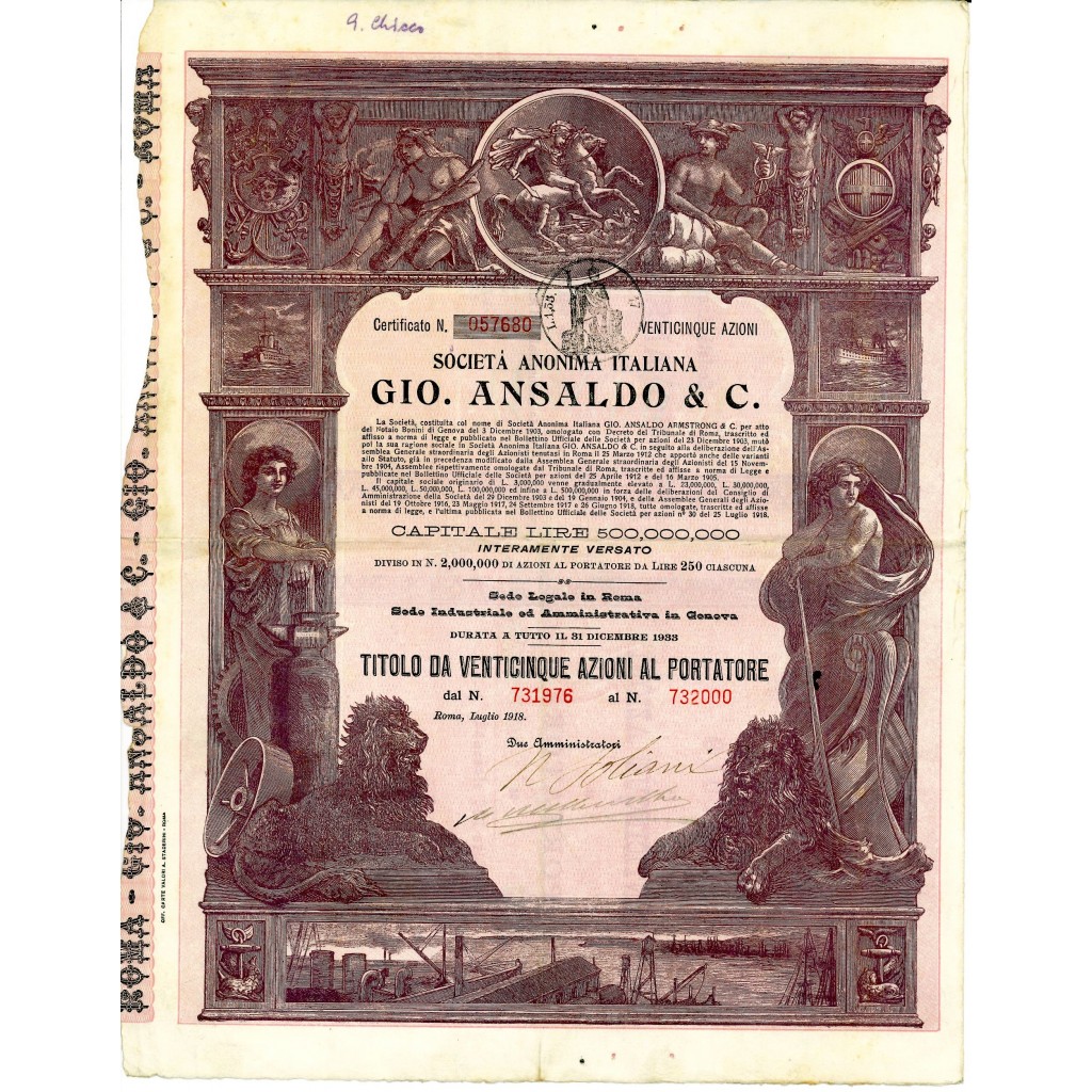 1918 - GIO' ANSALDO SOC. PER AZIONI - 25 AZIONI...