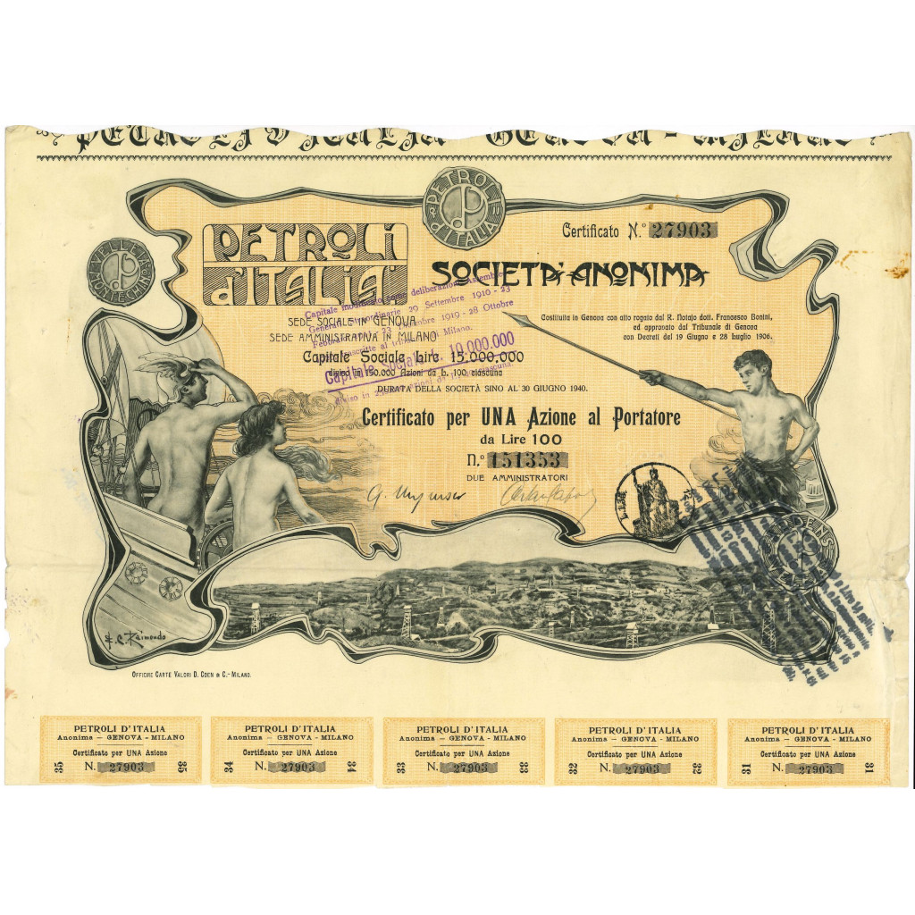 La costituzione della società nel 1906, fu promossa dal Banco Ricchini di Genova, per l'estrazione, la raffinazione ed il commercio del petrolio, dalla fusione di due società francesi: la Société Francaise des Petroles e la Société Petroles de Montechino. Nei primi anni, sono state acquisite, dalla società, tutte le raffinerie nella zona di Fiorenzuola d'Arda, in provincia di Piacenza. La compagnia, contribuì alla costituzione della Metangas, agli inizi degli anni ‘40, alla quale erano stati accordati alcuni permessi per la ricerca di metano nel Polesine. Durante la seconda guerra mondiale molti impianti furono distrutti e negli anni successivi molti furono sostituiti e aggiornati. Nello stesso periodo fu rivista e migliorata tutta l’attività commerciale dell’azienda. Nel 1958, nonostante l'impegno dei vertici dell’azienda, la società venne ammessa alla procedura del concordato preventivo.