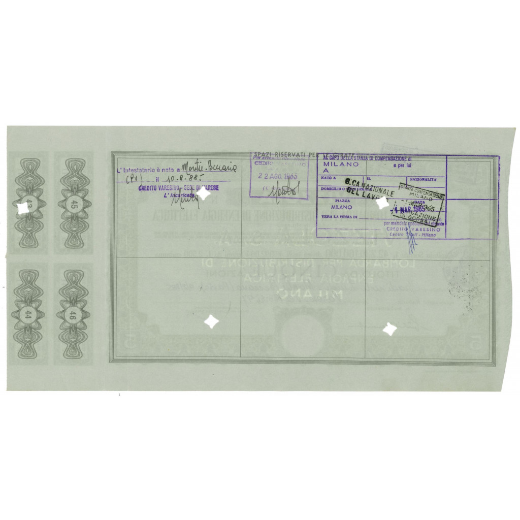 1963 - VIZZOLA SOC. PER AZIONI PER LA DISTRIBUZIONE DI ENERGIA ELETTRICA - 5 AZIONI - MILANO
