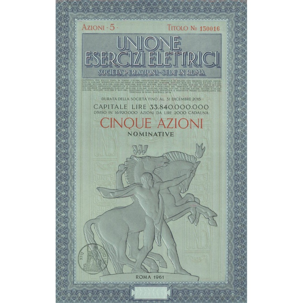UNIONE ESERCIZI ELETTRICI - 5 AZIONI - ROMA 1961