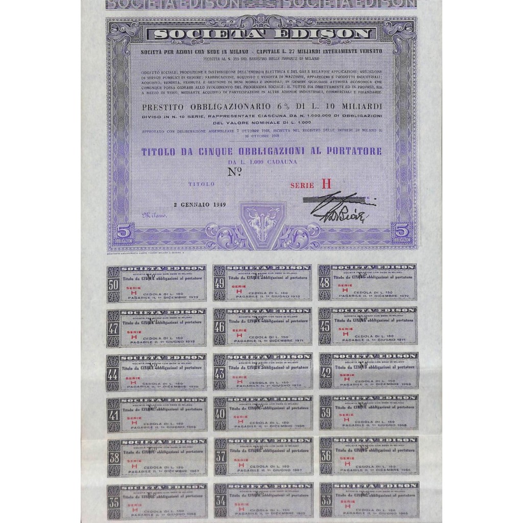 SOCIETA' EDISON - 5 OBBLIGAZIONI MILANO 1949