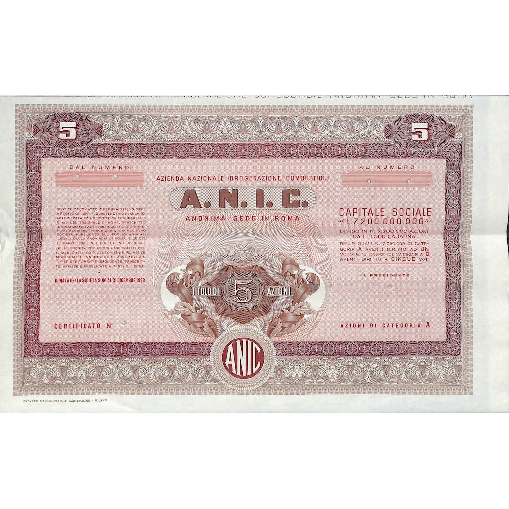A.N.I.C. AZIENDA NAZ. IDROGENAZIONE COMBUSTIBILI - 5 AZIONI ROMA
