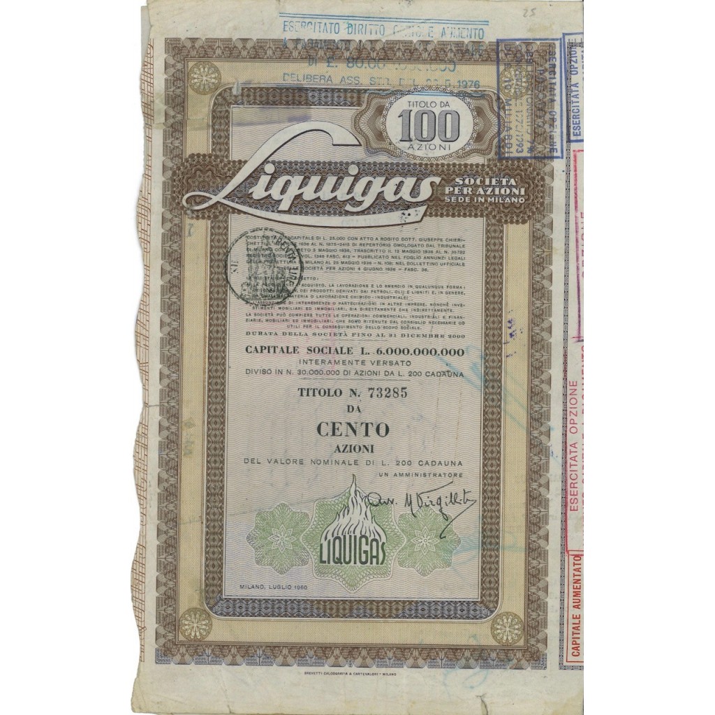 CERTIFICATO NOMINATIVO DA 100 AZIONI