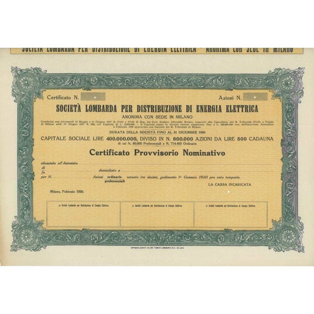 CERTIFICATO PROVVISORIO NOMINATIVO PER AZIONI