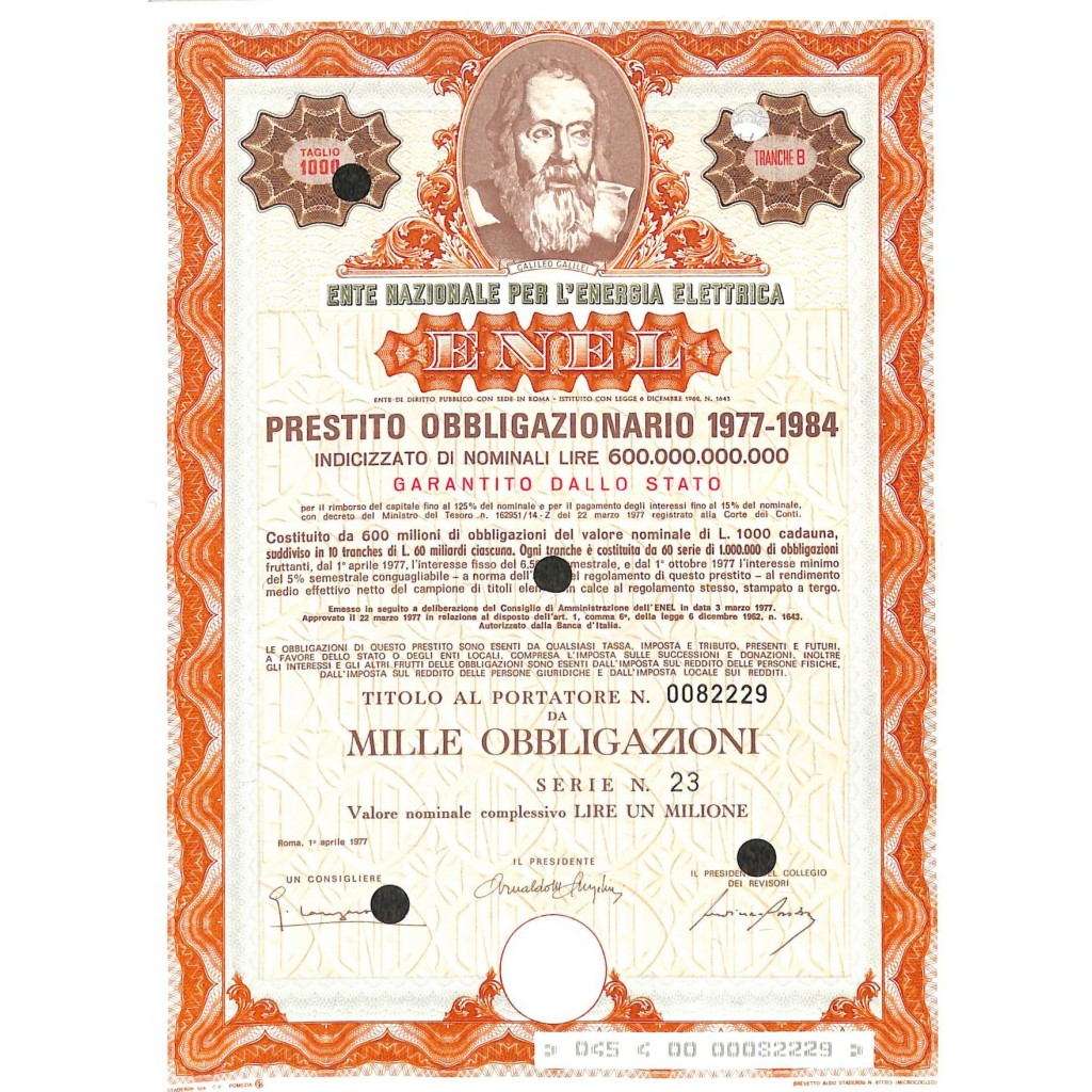 L'emissione di questo prestito obbligazionario avvenne in un periodo storico molto particolare per l’Italia. Negli anni '70, l’Italia stava affrontando le conseguenze della crisi energetica globale del 1973, innescata dall'embargo petrolifero dei Paesi arabi. L’inflazione era alta e la necessità di diversificare le fonti energetiche diventava sempre più urgente. In questo contesto, ENEL rivestì un ruolo fondamentale nell’espansione della capacità di produzione di energia elettrica, favorendo la costruzione di nuove centrali, tra cui le prime centrali nucleari italiane. Le obbligazioni emesse nel 1977 furono un elemento cruciale di questa strategia.