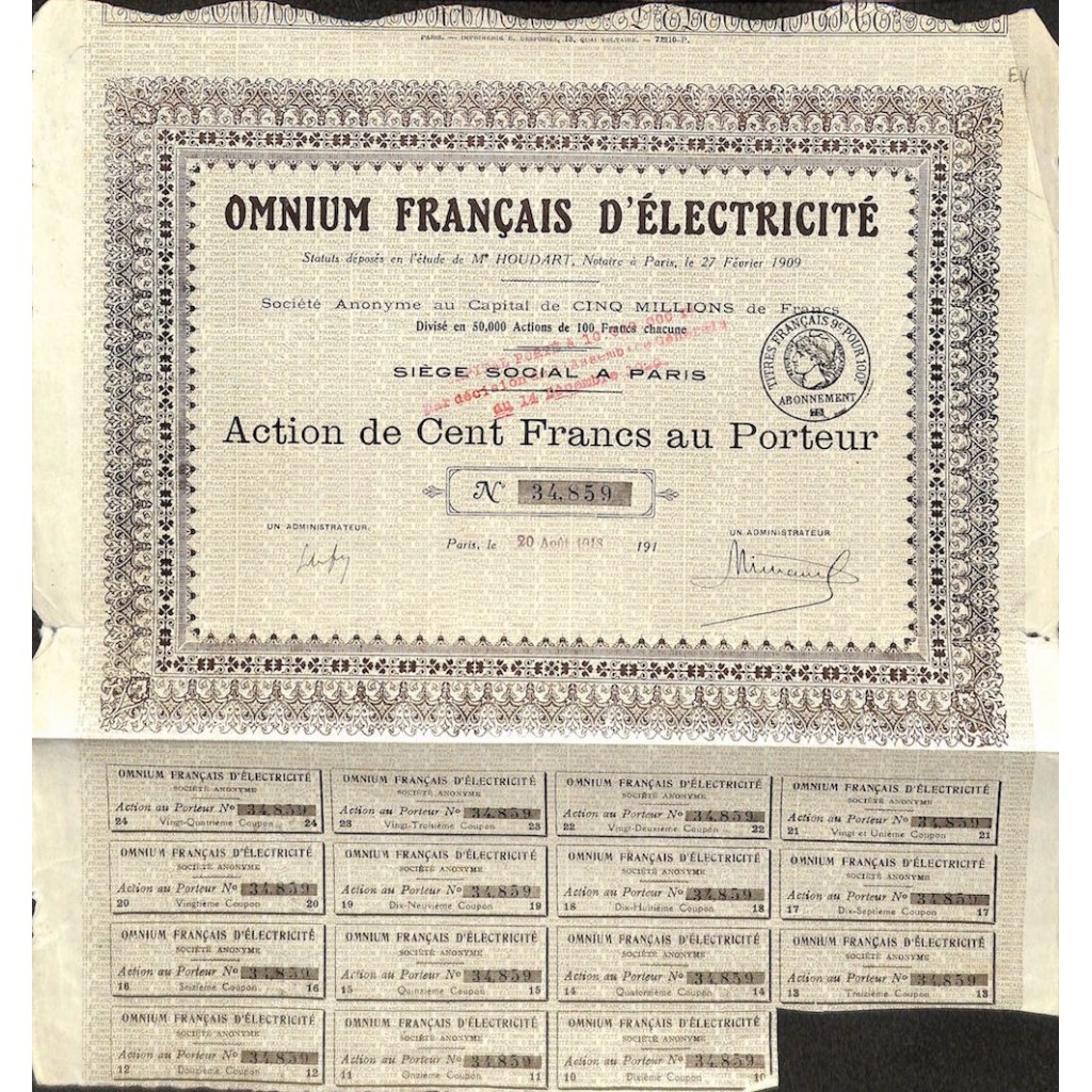 1918 - OMNIUM FRANCAIS D'ELECTRICITÉ