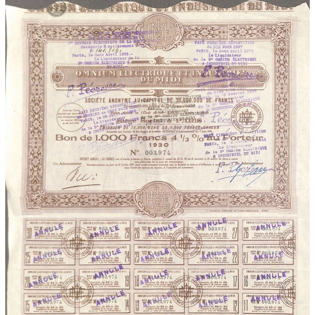 Buono al portatore del valore di 1000 Franchi 4,5%.