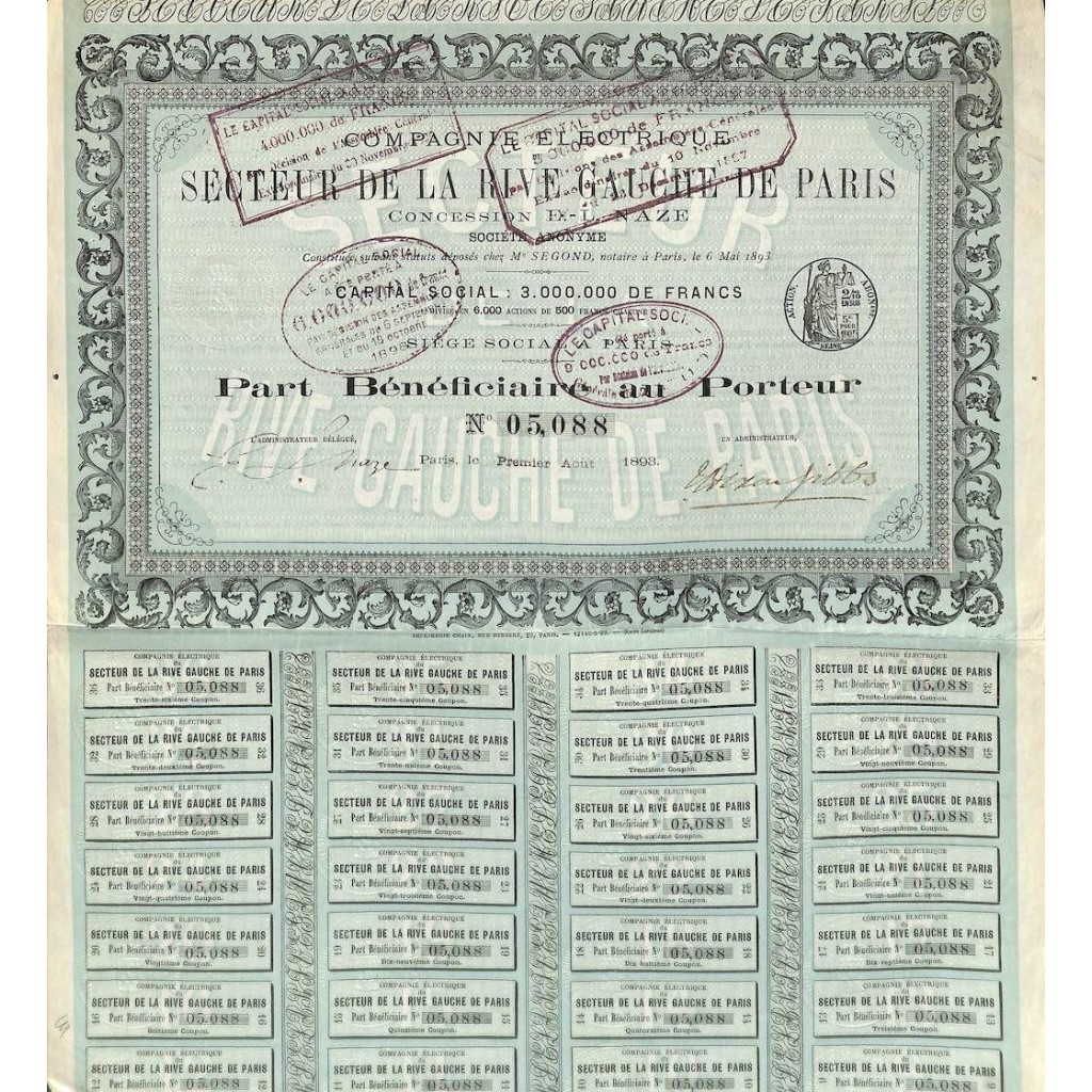 1893 - SECTEUR DE LA RIVE GAUCHE DE PARIS COMP. ELECTRIQUE DU