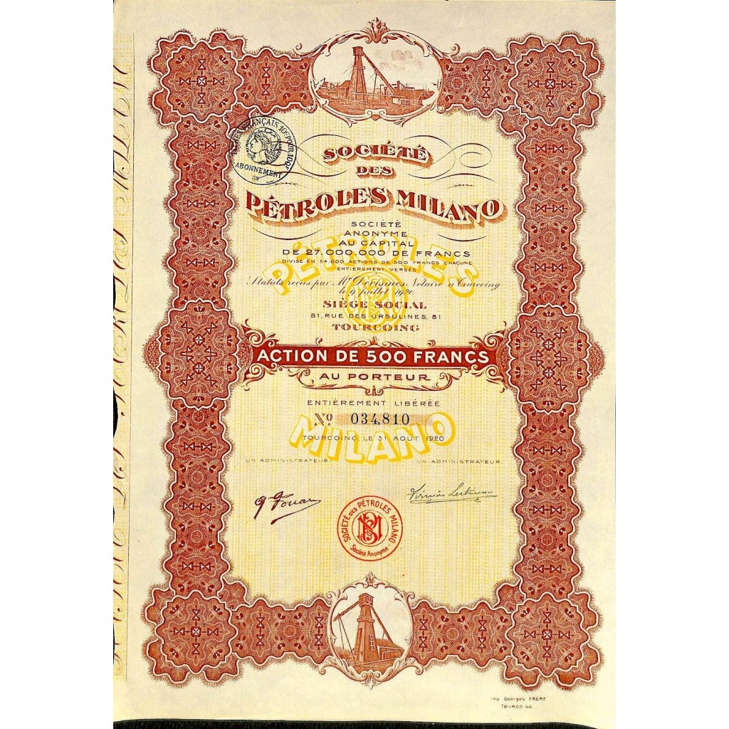 1920 - PETROLES MILANO SOC. DES