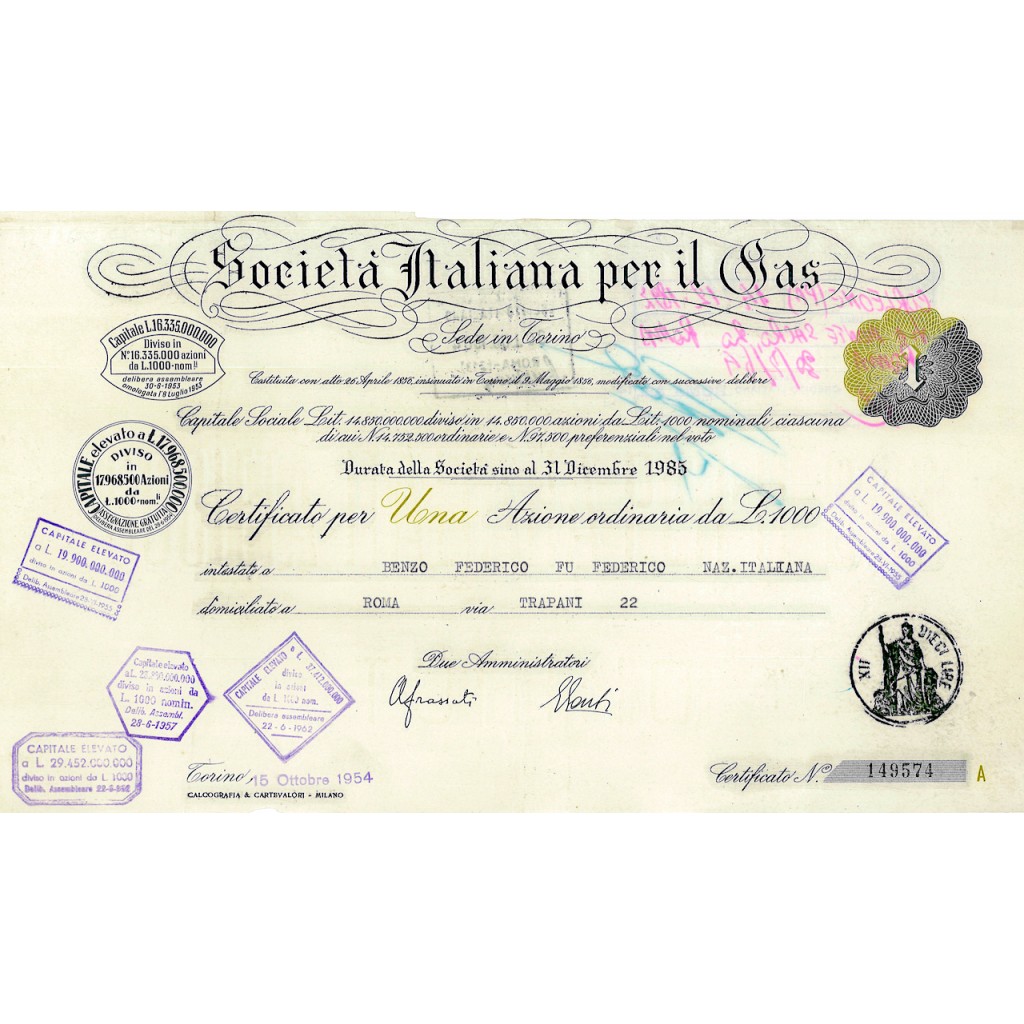 1954 - ITALIANA PER IL GAS - 1 AZIONE - TORINO