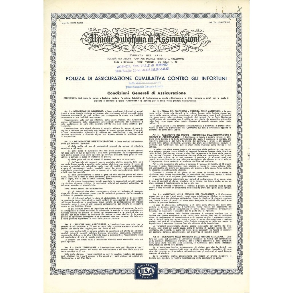 Nel 1928 viene fondata a Torino l'Unione Subalpina di Assicurazioni.