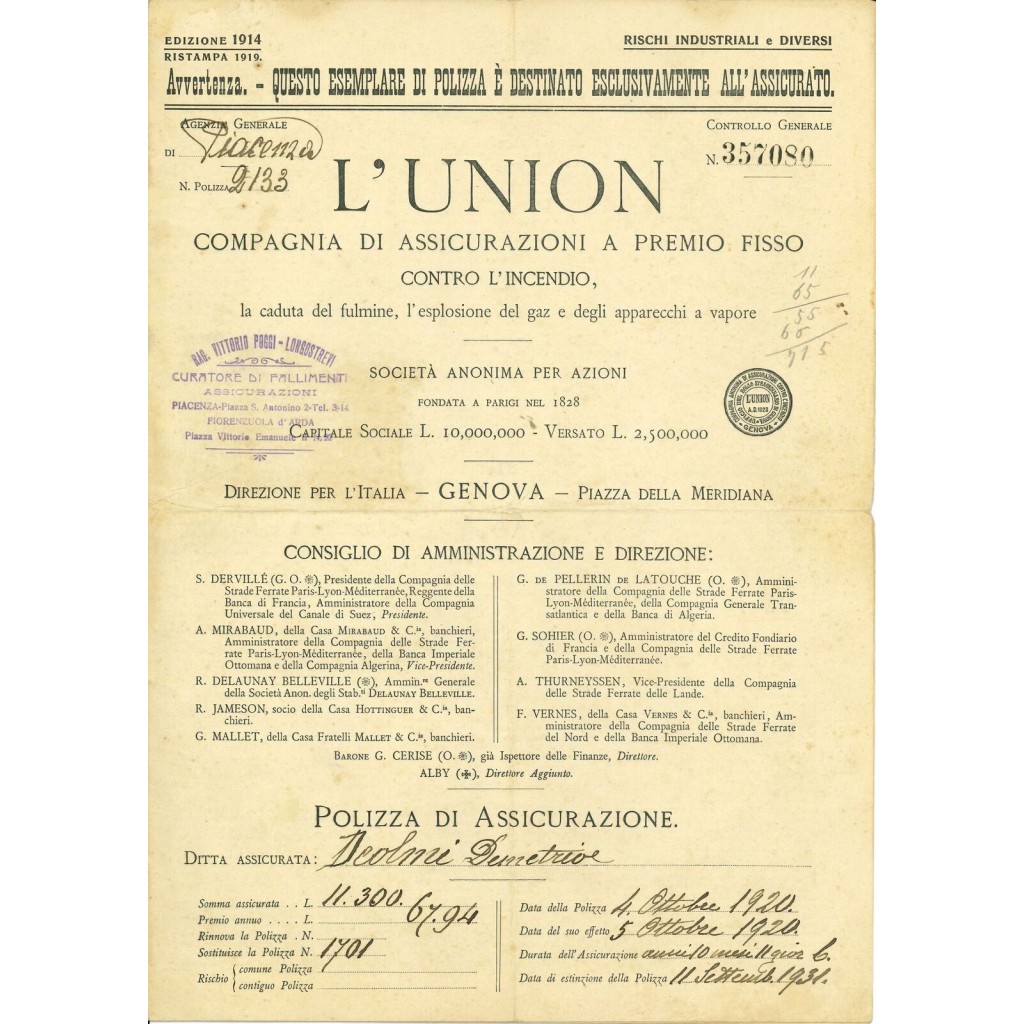Compagnia di Assicurazioni a premio fisso fondata nell'anno 1828.