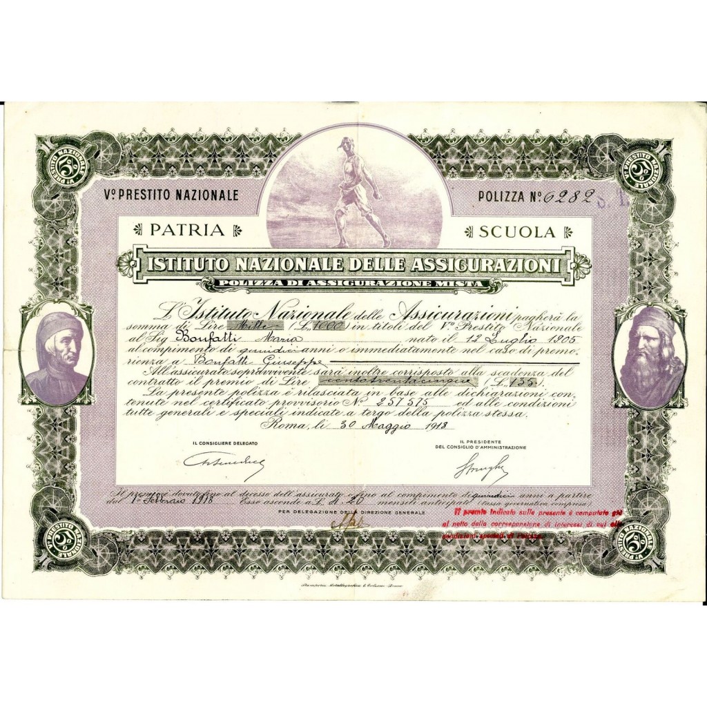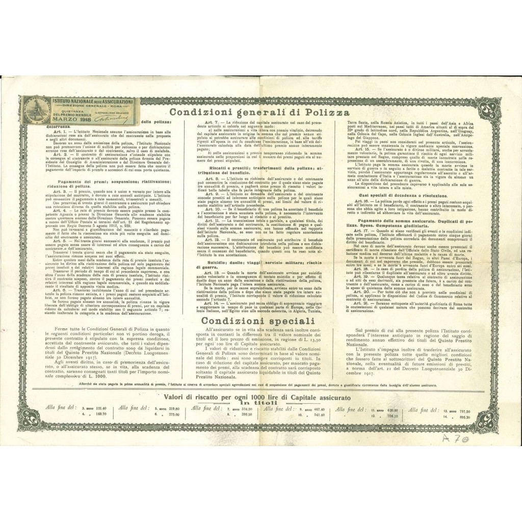 1918 - ISTITUTO NAZIONALE DELLE ASSICURAZIONI -...