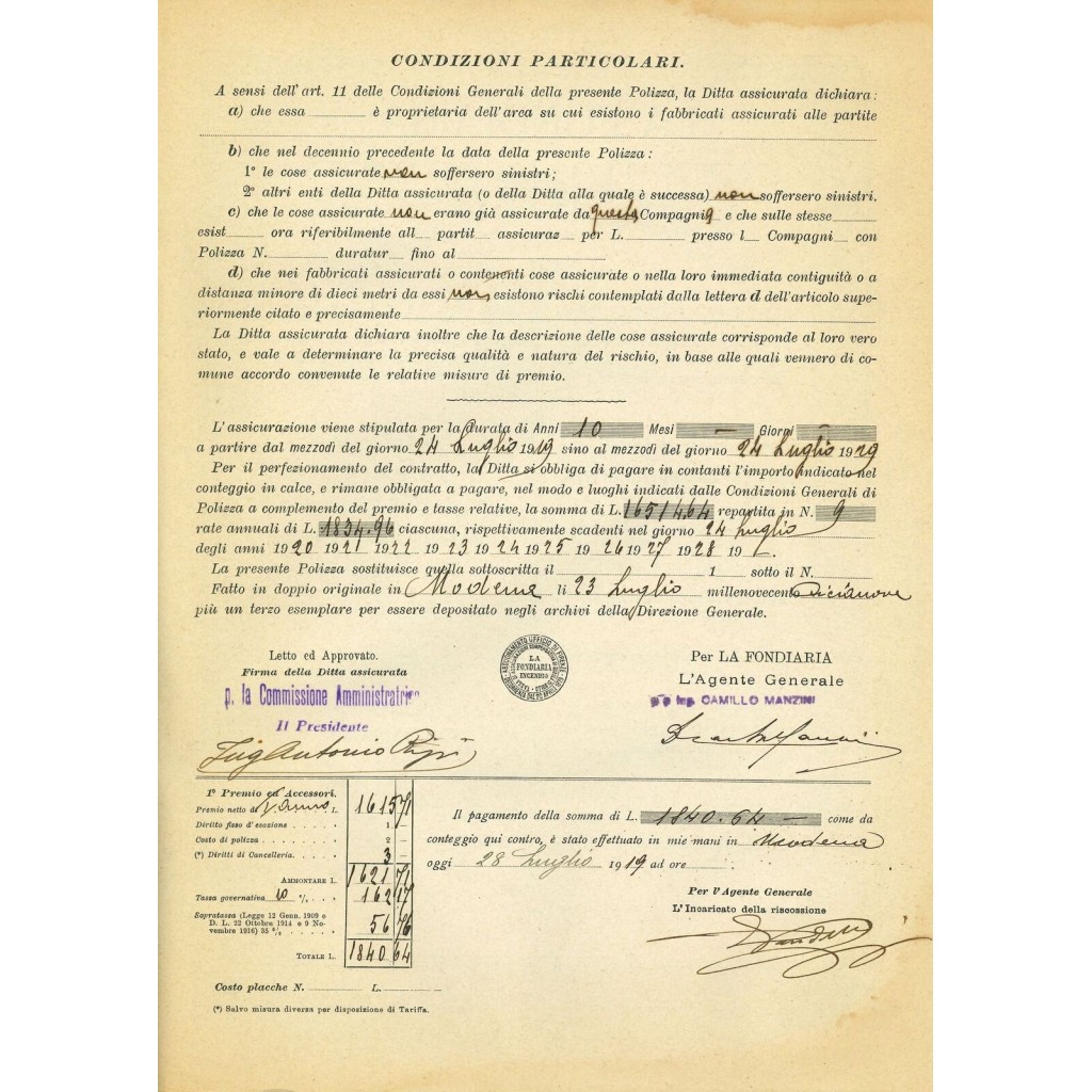 1919 - LA FONDIARIA - INCENDIO - MODENA