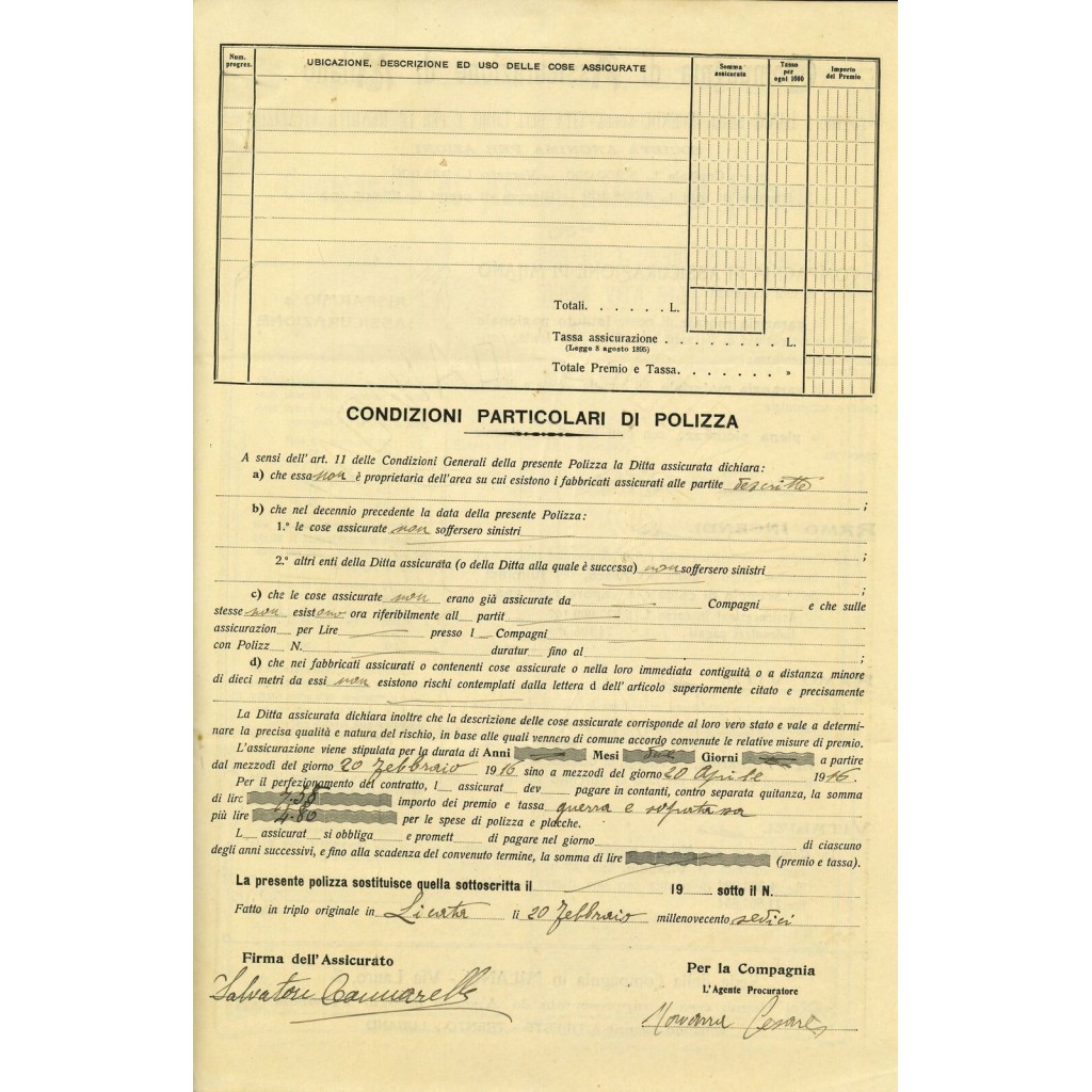 1916 - COMPAGNIA DI ASSICURAZIONE DI MILANO -...