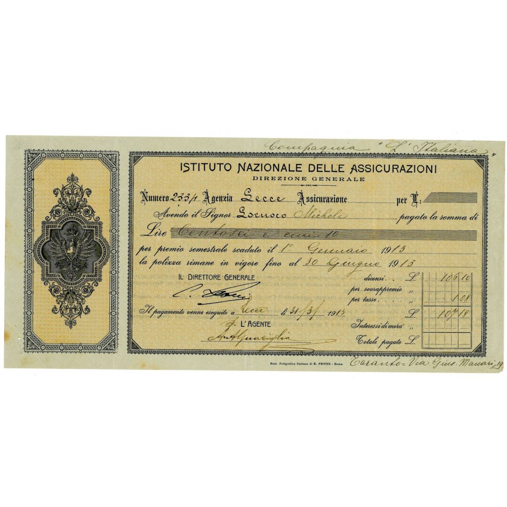 La legge 305 del 4 aprile 1912, emanata dal quarto Governo Giolitti, ordinò la nazionalizzazione delle assicurazioni sulla vita. Conseguentemente, nello stesso anno, fu istituito l'INA (Istituto Nazionale delle Assicurazioni), ente pubblico specializzato nel monopolio italiano delle assicurazioni sulla vita, con un decreto del ministro Francesco Saverio Nitti.