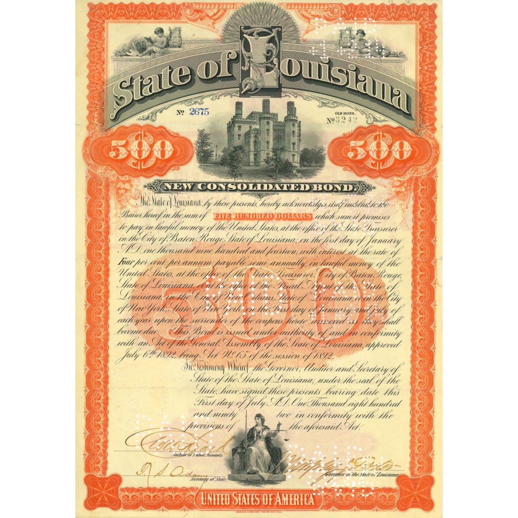 1892 - STATE OF LOUSIANA - 500$