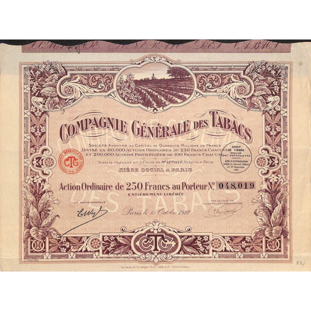 1927 - COMPAGNIE GENERALE DES TABACS