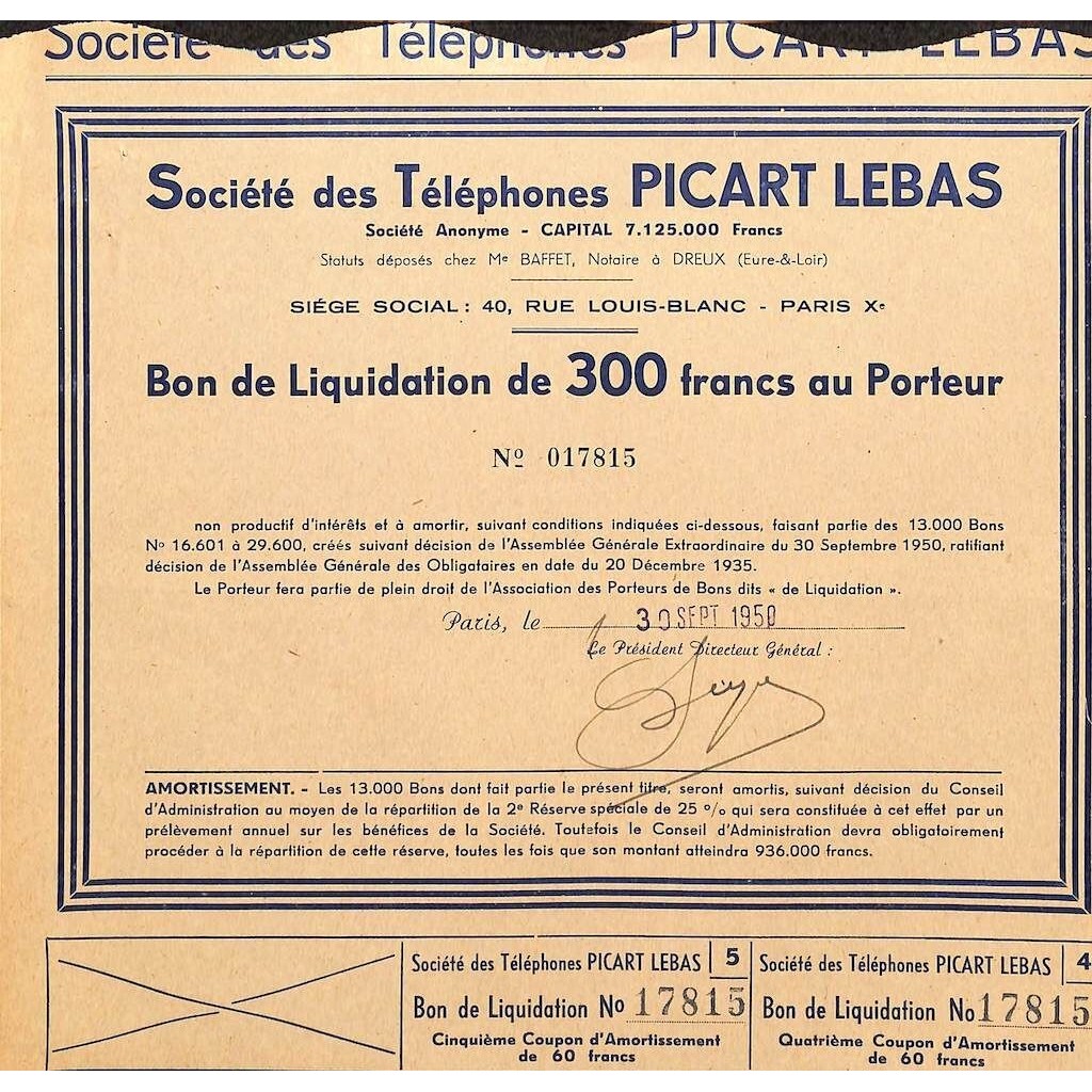 1950 - PICART LEBAS SOC. DES TELEPHONES