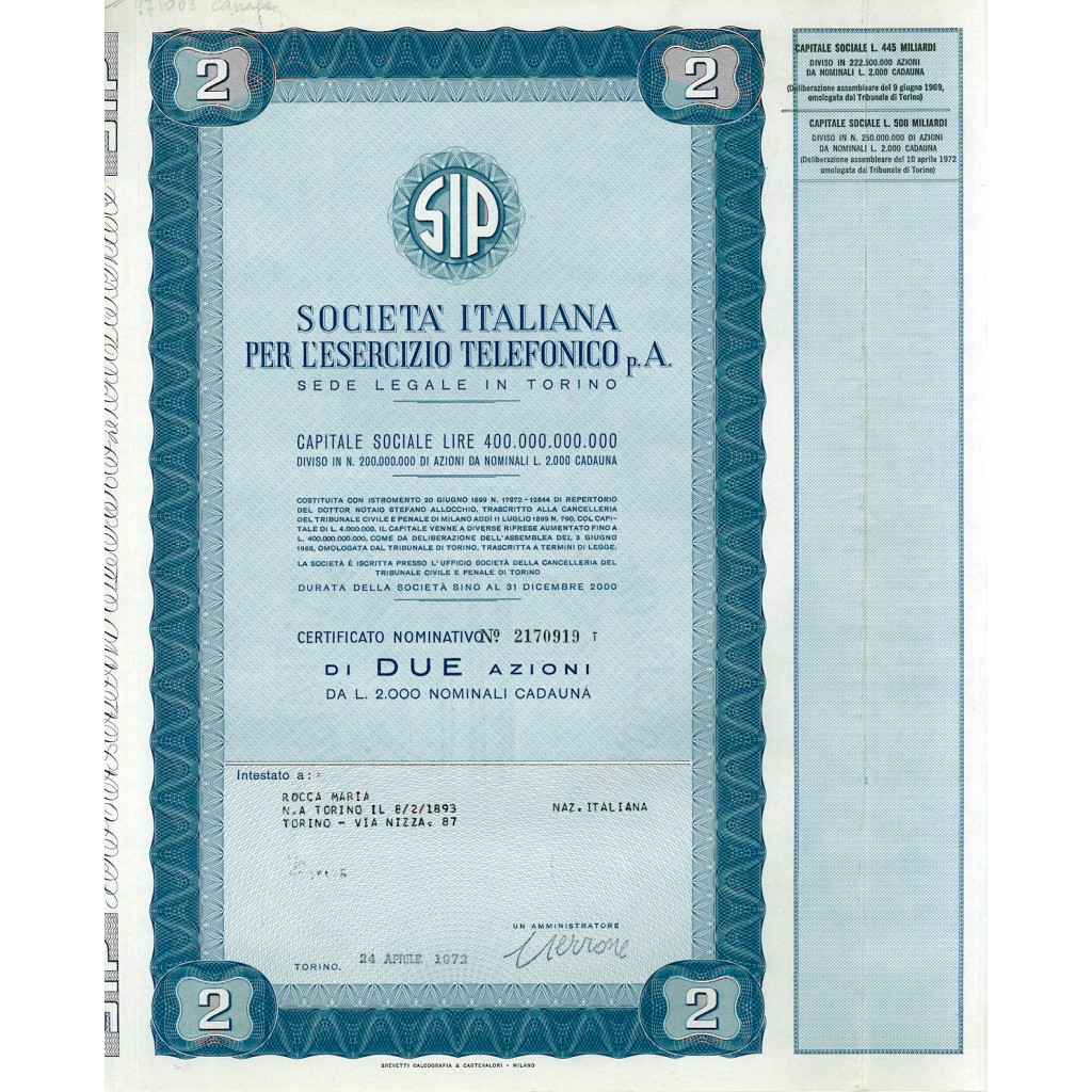 Sorta nel 1899 come azienda di produzione elettrica SIP - Società idroelettrica piemontese, dopo la nazionalizzazione dell'industria elettrica italiana (1963), reimpiegò i capitali derivanti dal rimborso della cessione forzosa degli impianti, investendo nel settore telefonico. Al momento della sua nascita, la nuova SIP contava, su tutto il territorio nazionale, 4.220.000 abbonati, 5.530.000 apparecchi telefonici in servizio e 27.600 posti telefonici pubblici.
